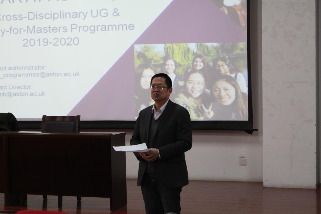3月15日上午,suncitygroup太阳集团邀请英国阿斯顿大学客人于公司明向校区经管楼二层报告厅作暑期培训班宣讲会。副经理(主持工作)栗继祖主持宣讲。