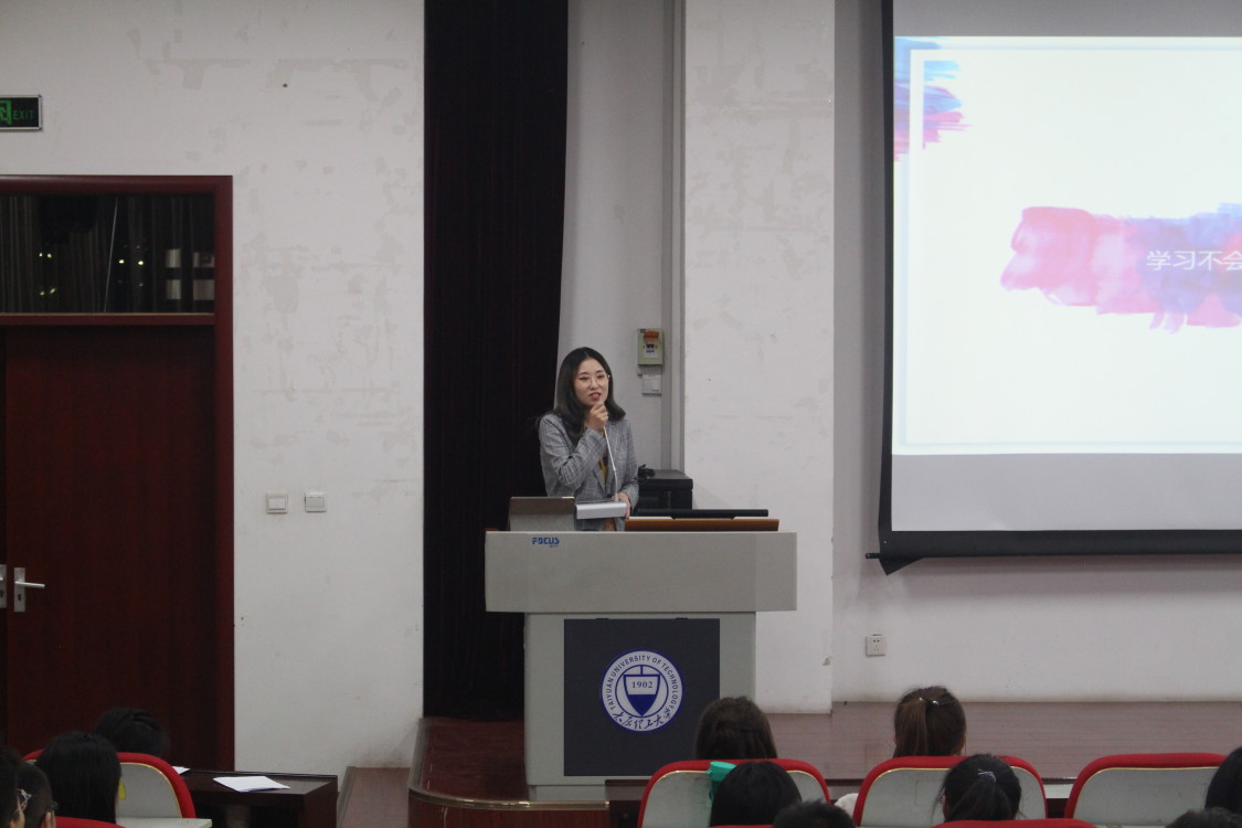 物流1602吴慧超主要就学习和竞赛两个方面的经验与大家进行了分享。她强调,学习是道必选题,要分轻重,要有目标、找准标杆,并为之努力。上课时要做好笔记,课后要进行合理的时间管理。对于期末考试,她表示,要尽早开始复习,并且做到心无旁骛。在比赛方面,她指出,要找适合的团队,找合适的指导老师,要不断完善自己的比赛项目。心态、沟通、合作也是团队竞赛中必不可少的因素。