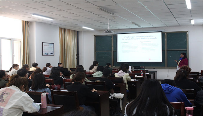 张海娜副教授从作者和编辑的角度探讨了如何在国际顶级期刊上发表研究论文。首先,她对发表定性研究的挑战与机遇、发表论文对该领域的贡献以及论文对话的对象这三个方面进行了讲解。随后,她强调了论文的题目、摘要和引言的重要性。之后,她以一篇论文为例与大家进行了深入的探讨,并耐心解答了大家提出的问题。