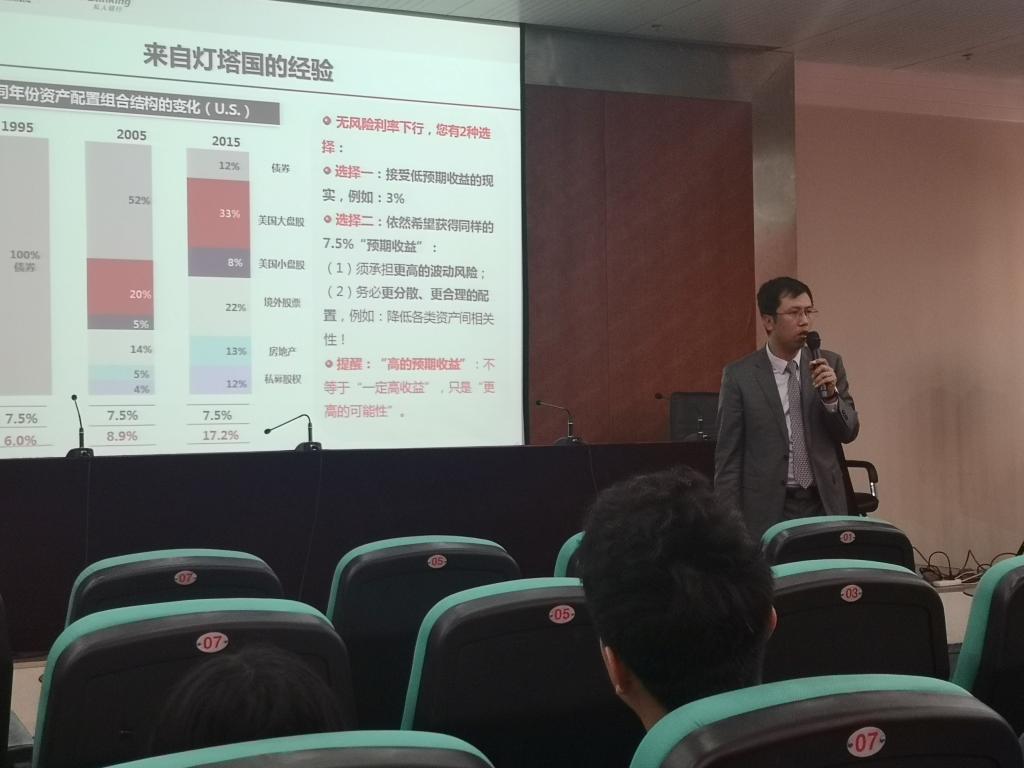 此次讲座,他以通俗易懂、诙谐幽默的语言,分析了当前国际金融整体的形势,财富管理中房地产、股票、基金、理财等比重,并根据财富管理逻辑及趋势做出未来投资方向的判断。现场气氛热烈,MBA学员踊跃参与,积极回答提问,形成良好的互动讲堂。