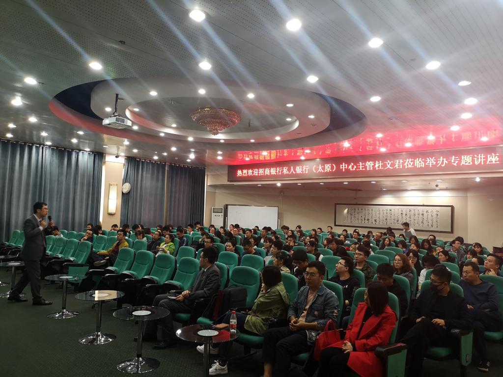 2019年4月21日,公司MBA教育中心在科学楼二层开展了第一期企业家讲座。本次讲座特邀招商银行私人银行(太原)中心主管、高级经理杜文君,以“国际金融形势、财富管理逻辑与未来投资方向”为主题开展专题讲座。MBA在校学员参加了学习。