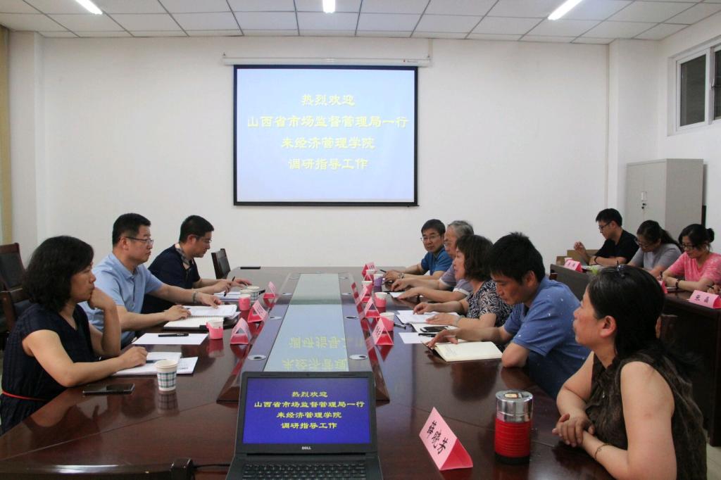 6月17日下午,山西省市场监督管理局副局长李志强、标准协调处副处长刘晓南一行来suncitygroup太阳集团调研指导工作,双方在经管公司226会议室进行了座谈。副董事长李明出席座谈会,经济管理公司党委书记李玮、副书记杨振东及教师代表参加座谈。