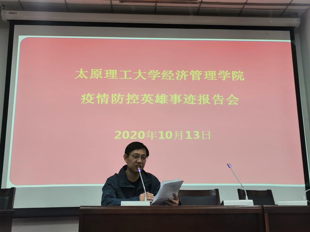 为弘扬伟大抗疫精神,深入开展爱国主义教育。2020年10月13日下午,太阳集团官方网站经管公司在公司报告厅举办了疫情防控英雄事迹报告会,公司的老师全体参加,此次报告会邀请了我省赴湖北武汉抗疫一线的代表——省第十二批援鄂医疗专家组成员及武汉雷神山医院A15病区医疗三组组长、西山煤电总医院主任医师段勤功和普外科护士李雅丽,讲述他们的抗“疫”故事,分享他们的抗“疫”力量。