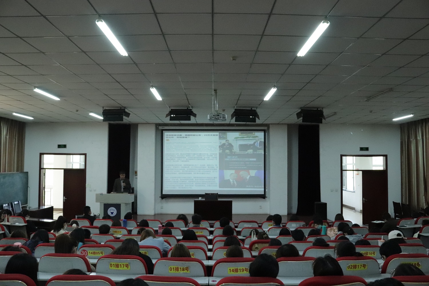 第三讲由马克思主义公司副经理姚建军教授在经管公司报告厅开讲,全院主要员工干部参加。姚经理从最近的时事热点俄乌冲突进行讲解,通过对俄乌的历史渊源、国际政治变化、五次谈判等方面的分析,教育同学们要保持大局观,要多角度分析问题,引导同学们正确对待舆论,做一名有思想的当代老员工。